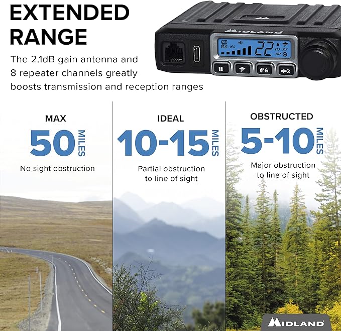 - Extended Range for Reliable Communication: The MXT115 features MicroMobile 15-watt power and a detachable external magnetic mount antenna, providing exceptional communication capabilities. Enjoy a remarkable 25-mile communication range in open areas, extending beyond typical GMRS radios. Meanwhile, the T71VP3 delivers an impressive communication range in areas with minimal obstructions, ensuring you stay connected with reliable performance. Experience reliable and extended communication range.