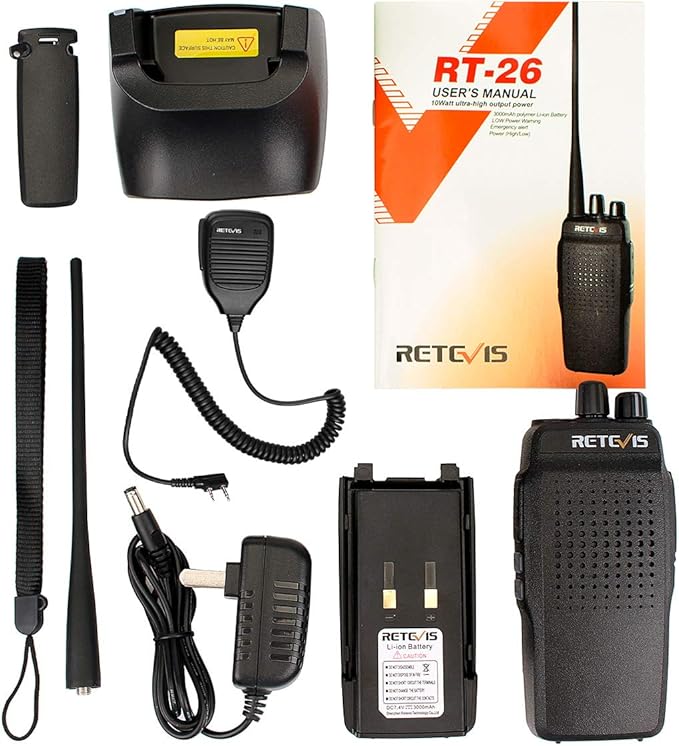 - High power and strong penetration of the RT26 walkie talkie can offer you a clear signal; high gain antenna further enhances the transmission range