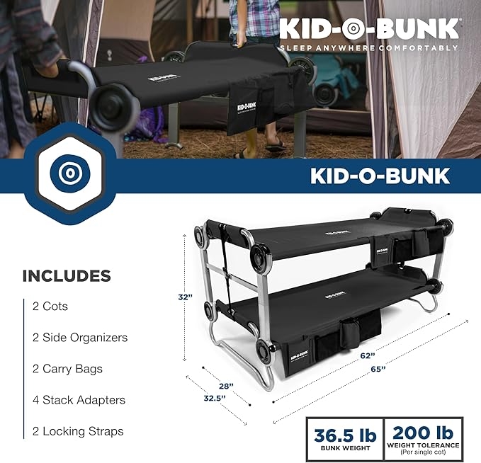 - IDEAL FOR ALL CHILDREN, AGES 7-12: Kid-O-Bunk is designed for children aged 7-12 and has a weight limit of 200lbs (91kg) per cot, ensuring safe and comfortable sleep for your little ones.
