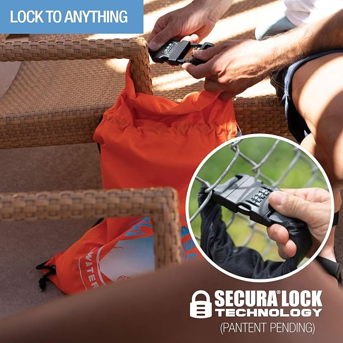 - COMBINATION LOCK: Secura Lock Technology with 3 digit resettable combo lock (no key). Secures to any stationary object preventing theft. Protect valuables at the beach, pool, camping, sporting events & more. See video for lock instructions