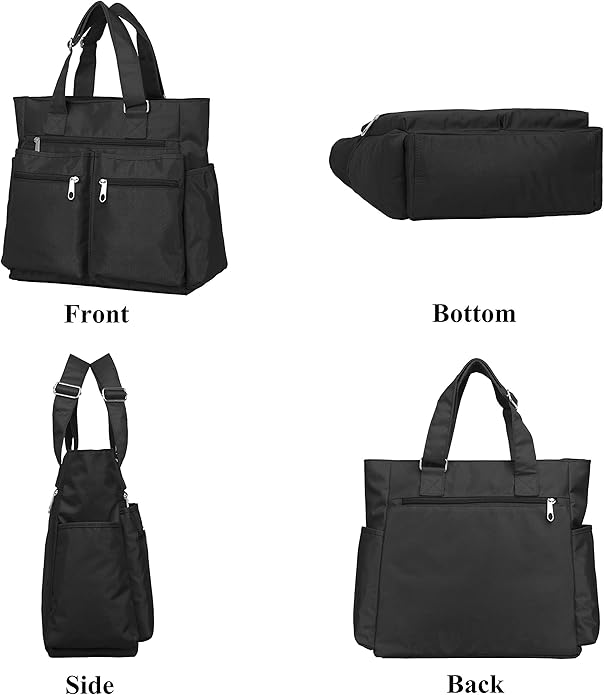 VOLGANIK ROCK Canvas Tote Bag Waterproof Nylon Multi Pocket Shoulder Bags Laptop Work Bag Teacher Purse Handbag for Women Men
