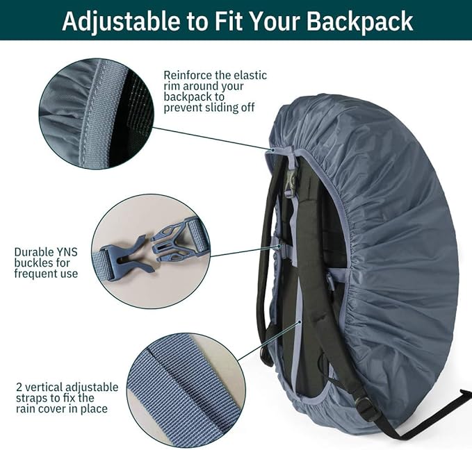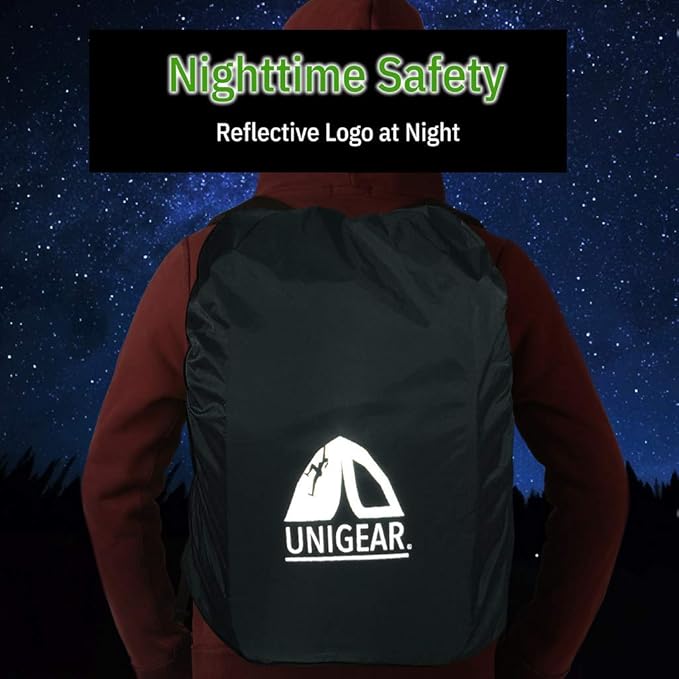 • Adjustable to Cover Your Backpack : Unigear rain cover features 2 vertical anti-slip buckle straps to adjust different backpack and pull the pack cover tight across the pack harness. Reinforce the elastic rim around your backpack to prevent sliding off. Comes in 5 sizes and colors to fit from 10L to 90L backpack
