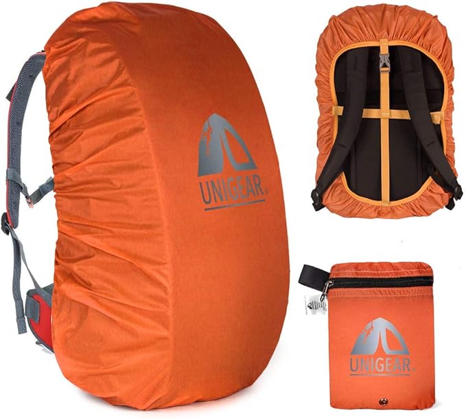 • Packs into Its Own Mini Carry Pouch : Unigear backpack cover is ultraportable, tiny and saving space. Designed with double-sided zipper, it can be packed down into its own nylon pouch which attached to the pack cover. Don’t worry about losing the carry pouch again