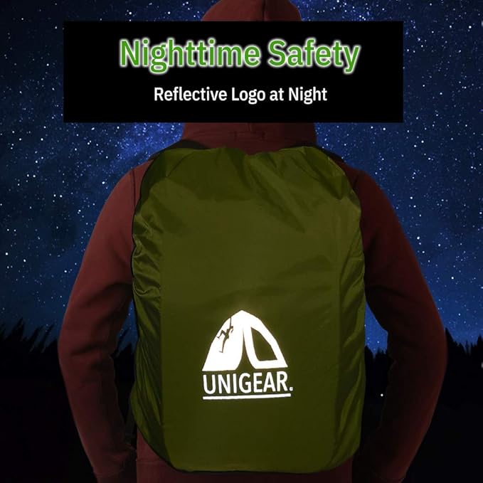 - Adjustable to Cover Your Backpack : Unigear rain cover features 2 vertical anti-slip buckle straps to adjust different backpack and pull the pack cover tight across the pack harness. Reinforce the elastic rim around your backpack to prevent sliding off. Comes in 5 sizes and colors to fit from 10L to 90L backpack