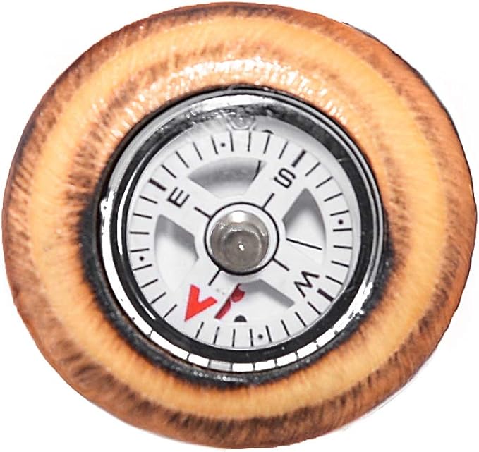3pc Detachable Fir Wood Walking Stick for Hiking with Compass 55 Inches - with Animal Carving - Soft Hand Strap - Rubber Tip Cover