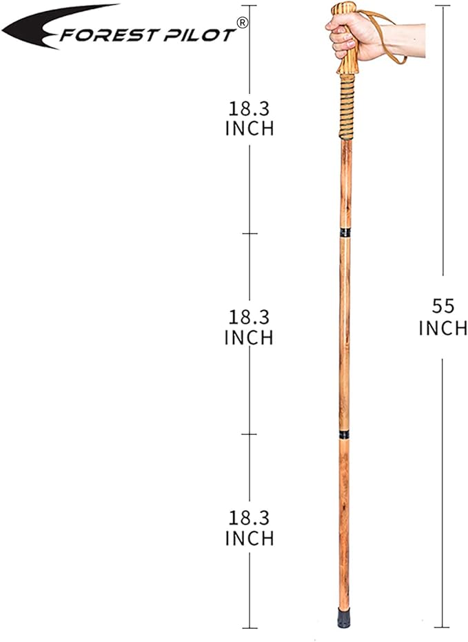 - 【QUALIFIED WOOD MATERIAL】 - FOREST PILOT 3-pc Detachable Hiking Stick is Made of straight and solid Pure Natural Hardwood.