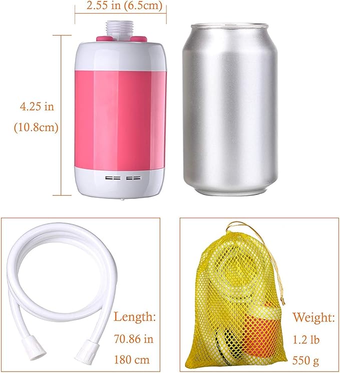 • 【Beautiful and Lightweight Shower】 The electric shower's appearance is beautiful and generous. It is a portable shower. Its compact structure, light weight, easy to carry. The portable electric shower built-in a filter device. When used outdoors, this can filter out weeds and leaves in the water