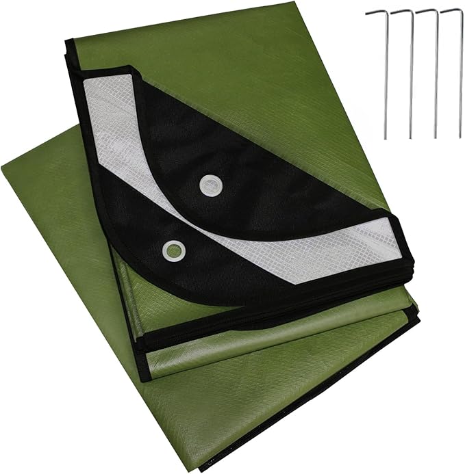 - ⛺️【Reusable and Durable】Rugged 4 Layers including PE, Polyester Mesh and Aluminum Foil. Suitable for Many Situations, including Raincoat, Camping, Hiking, Mountainning, Snowfield and Heavy Duty. Also Can be Used as Car Protection, Sunshine Shelter, Pets Shelter, SOS Signal, Solar Heater for Many Times.