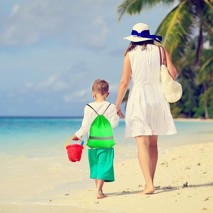 KUUQA 12 Pcs Drawstring Backpack Bag Bulk Reflective Backpack Green String Bags Cinch Sack Backpack for Team Yoga Sport Gym Traveling