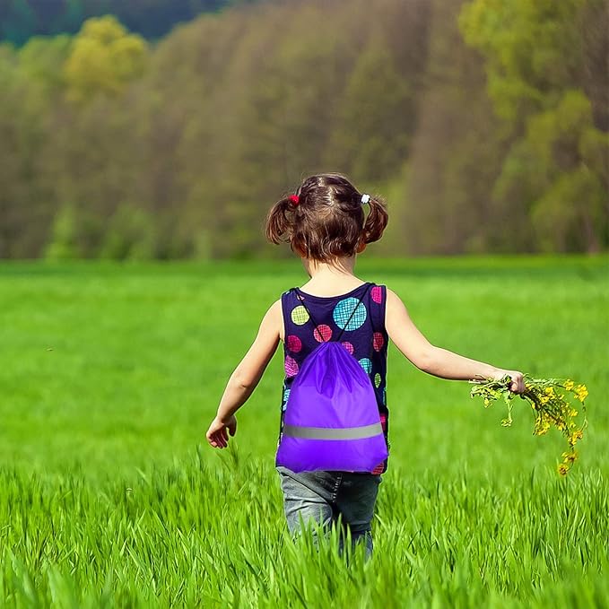 KUUQA 12 Pcs Drawstring Backpack Bag Bulk Reflective Backpack Purple String Bags Cinch Sack Backpack for Team Yoga Sport Gym Traveling