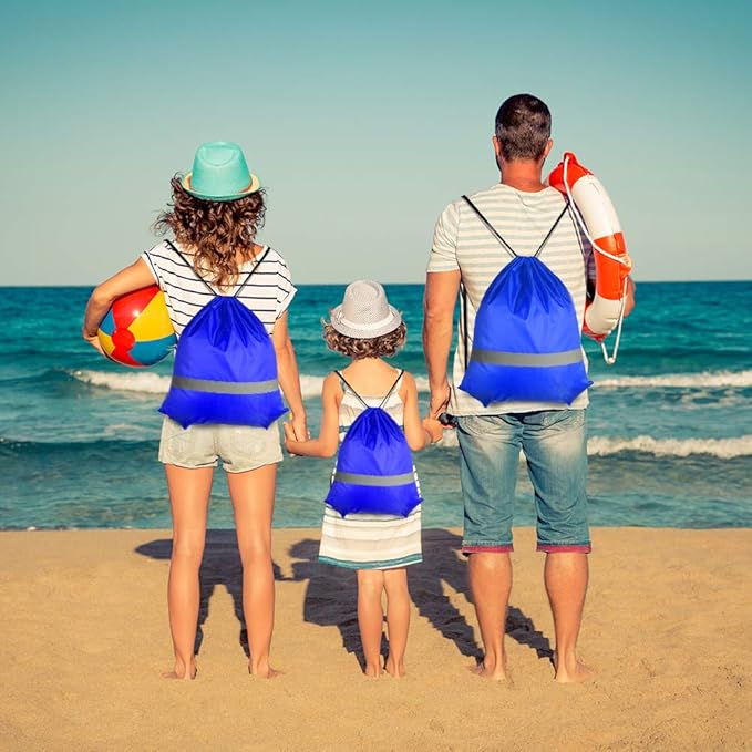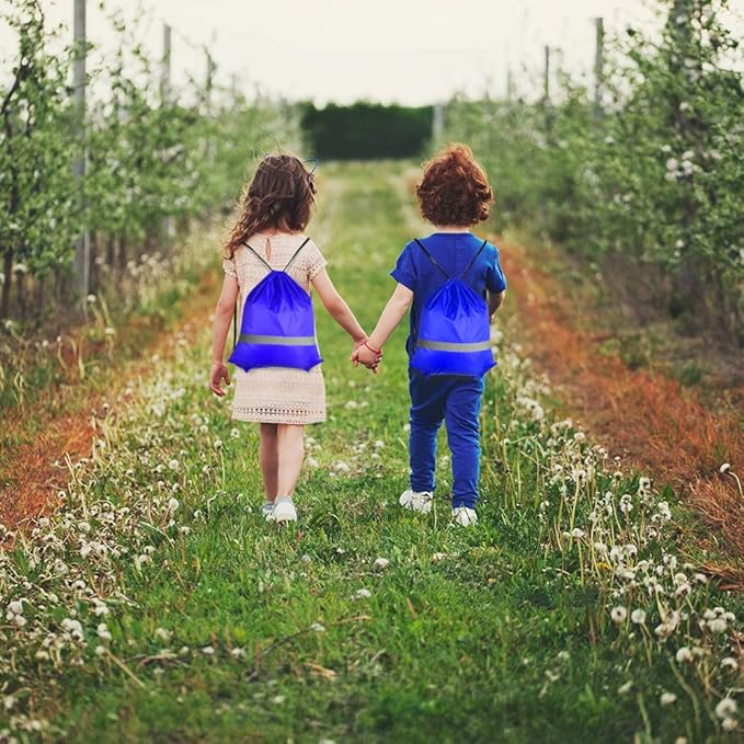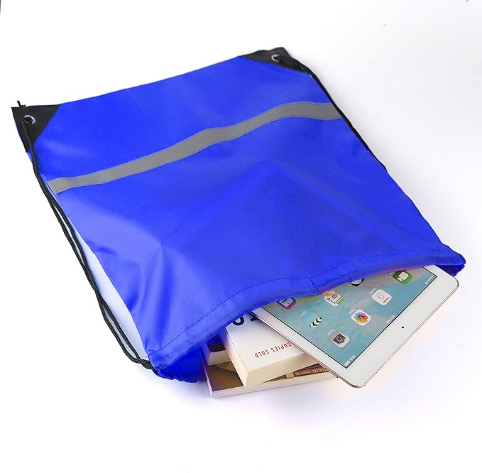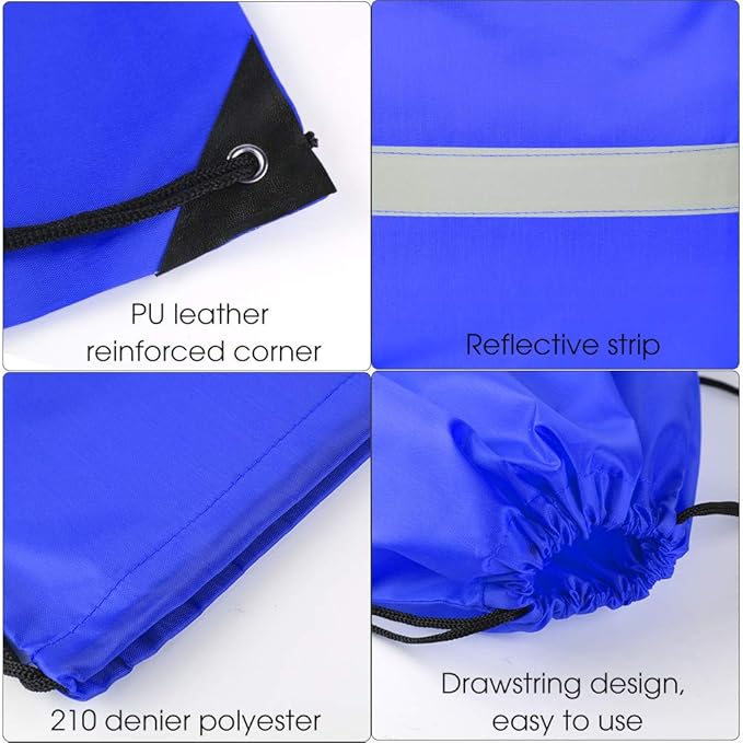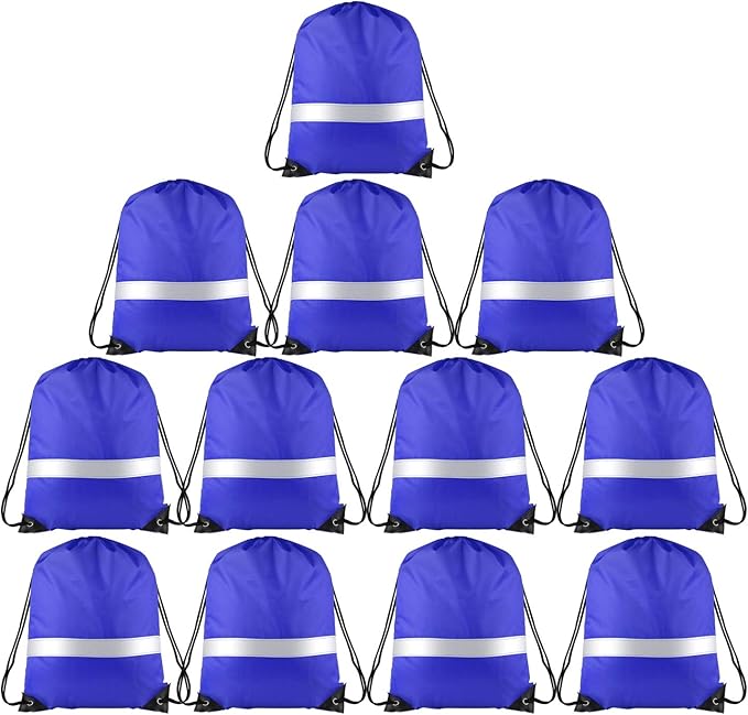 KUUQA 12 Pcs Drawstring Backpack Bag Bulk Reflective Backpack Blue String Bags Cinch Sack Backpack for Team Yoga Sport Gym Traveling