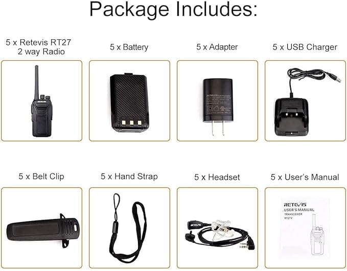 - Earpiece air sound tube 2 pin; soft material conforms to ear structure; comfortable to use; RT27 can communicate with Retevis RT21 RT22 H777S on the first five channels