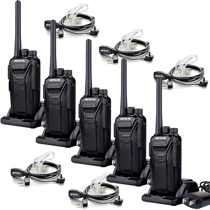 Retevis RT27 2 Way Radio with Earpieces,Walkie Talkies for Adults,1100mAh Battery,VOX Handsfree,Long Range Rechargeable Two Way Radios for Warehouse Retail Restaurant(5 Pack)