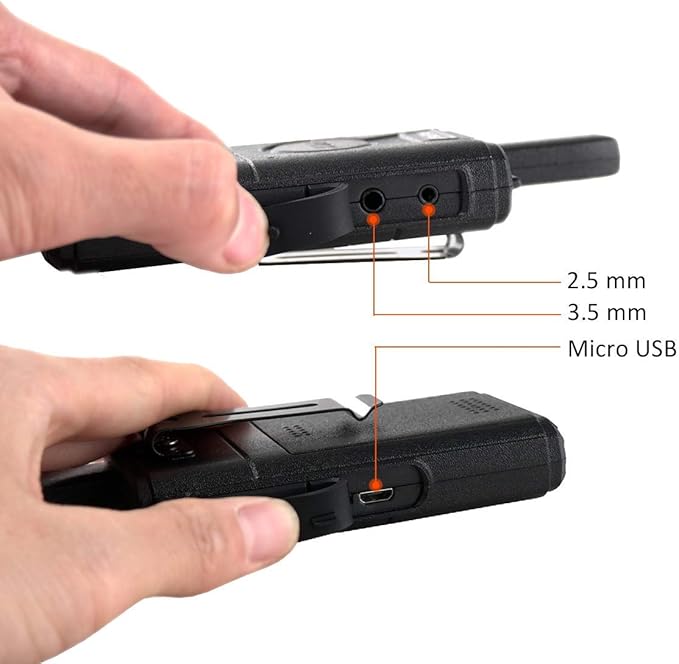 - Small compact and easy to use walkie talkies; less than 0.6 inches thick;weighing only 0.26 pounds; it can be easily held by both adults and children when picnics;camping;short hikes