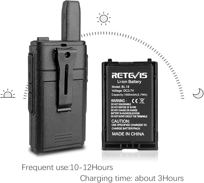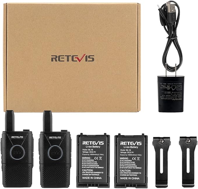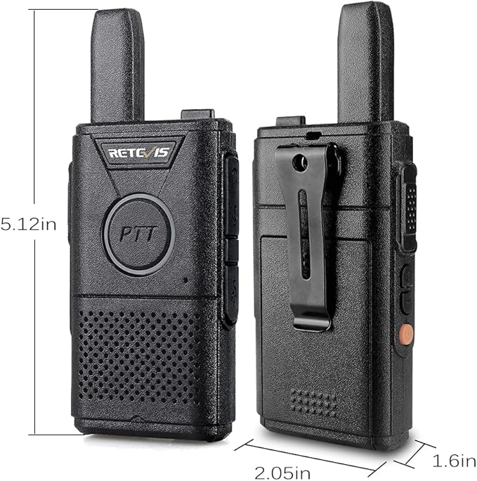 Retevis RT18 Rechargeable Walkie Talkies,Portable FRS Two-Way Radios,Dual PTT,Metal Clip,Small Mini Walkie-Talkie for Seniors Skiing Gift Family Camping Elderly(2 Pack)