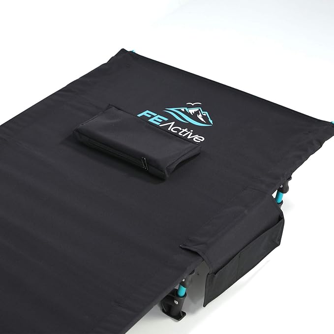 FE Active Folding Camping Cot - Lightweight, Compact & Portable Camping Bed, Comfortable Sleeping Cots for Adults & Kids - Camp Cot Fits Single Air Mattress Pad|Designed in California, USA