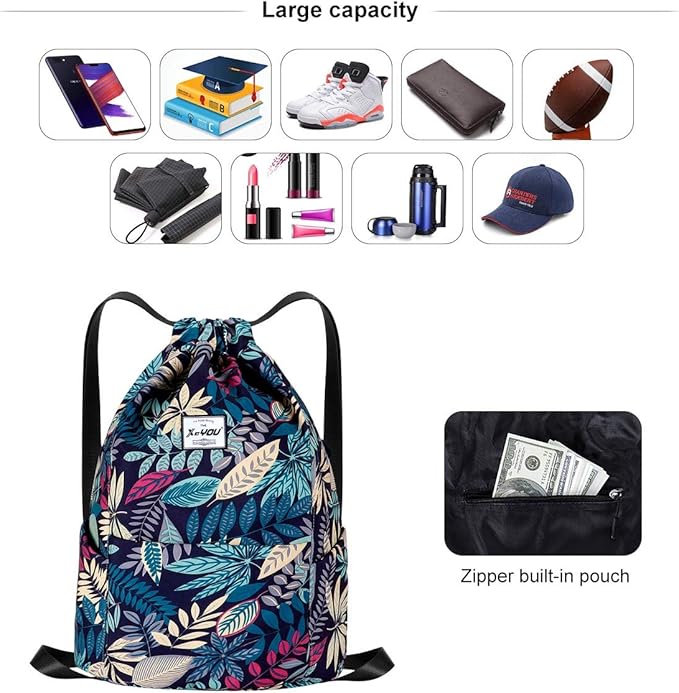 • Lightweight and Waterproof - This drawstring bag is lightweight and easy to carry. The fabric is waterproof and all the things inside are protected very well. It is a great cinch sack bag for swimming, cycling, gym, yoga and your day trips.
