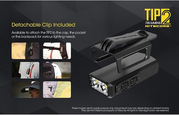 - Shorter than a car key and lighter than 1.5 oz, you can carry TIP2 on a keychain, in your pocket, or attach it to a backpack or cap bill with its removable clip. It is the ultimate high performing EDC flashlight.