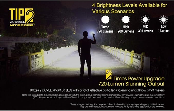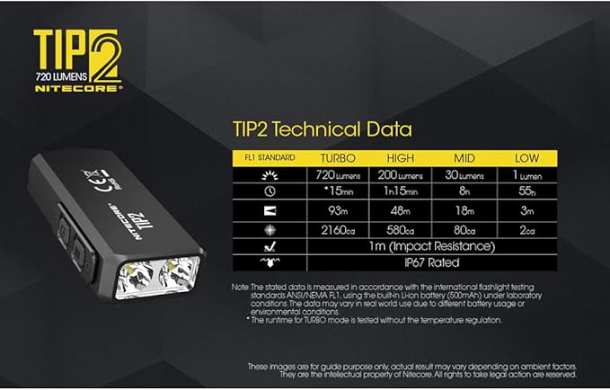 - BRIGHTEST KEYCHAIN LIGHT - Doubling the power of the popular NITECORE TIP, NITECORE TIP2 reaches up to 720 lumens and over 100 yards in distance.