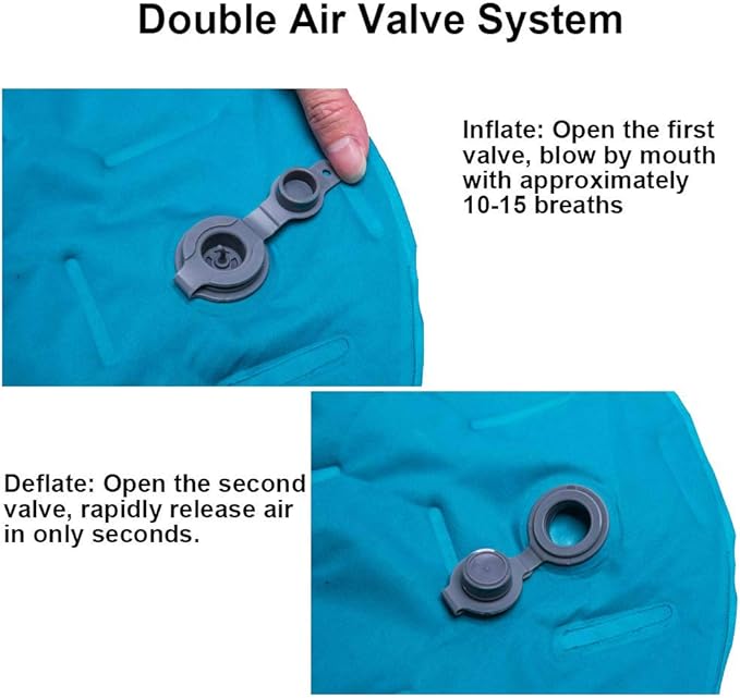 - INFLATING CAMPING PAD TECHNOLOGY: Experience our easy-to-use air valve that allows for quick inflation (in 10 - 15 breaths). The two-layer valve design promises a positive lock without leaks and a deflation in one second without complications