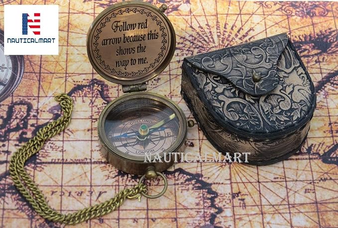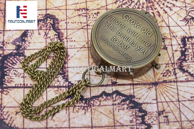 - ✔️★ PREMIUM QUALITY BRASS COMPASS: Premium quality handcrafted brass compass and leather case. Engraved Brass Compass quote 'Grow Old Along with Me'. The high-quality jewelled compass needle settles to north very quickly for well-timed and accurate reading. This Compass Provides Accurate directional assistance. this compass can also be used for Camping, Hiking or Adventure Traveling.