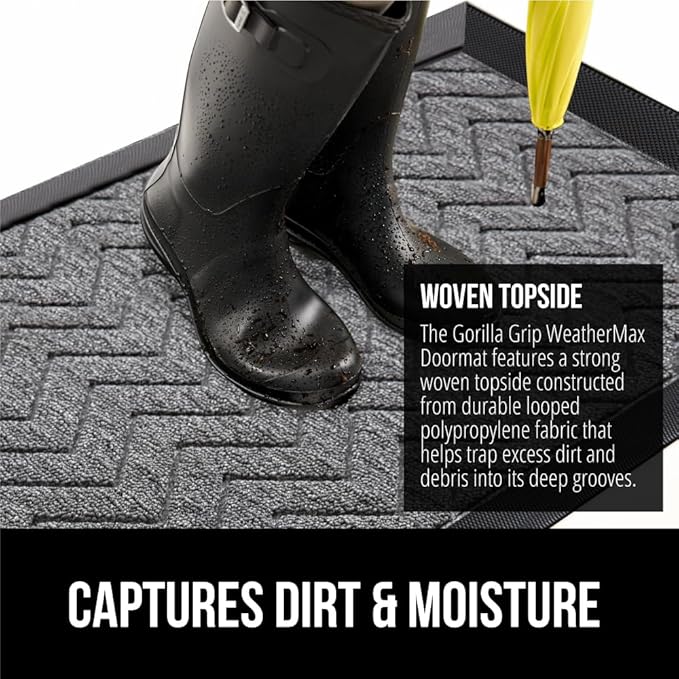 - THE ORIGINAL WEATHERMAX ALL SEASON DOORMAT: Gorilla Grip's Original WeatherMax doormat is built tough with a heavy duty, yet soft and flexible construction; deep grooves, beveled rubber border and retention dam help capture dirt, debris and moisture