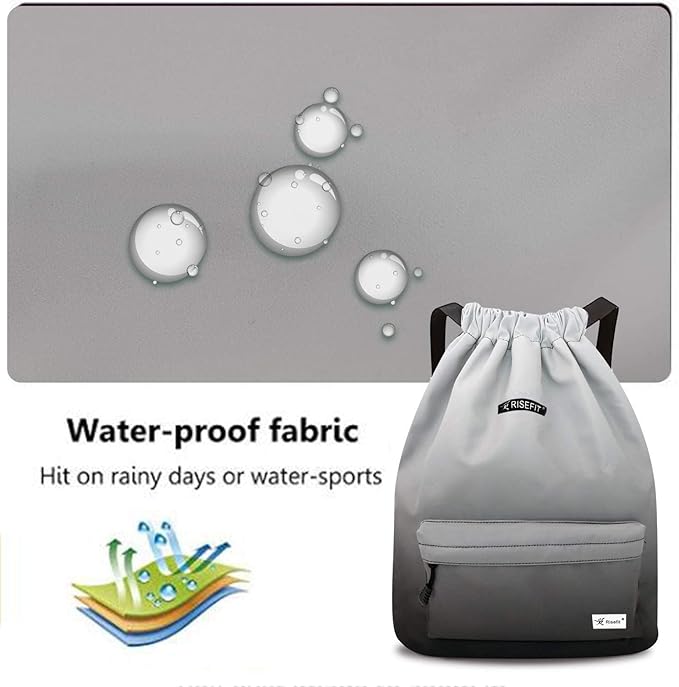 - STYLISH—Risefit Drawstring Backpack combines functionality with style. Its sleek design and versatile color options make it suitable for any occasion, adding a touch of fashion to your everyday look.