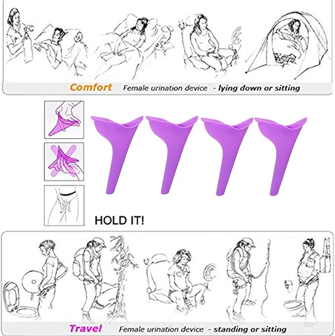 - Features: Female urination device that allows you to urinate while standing up. It’s neat, discreet and hygienic. Made with flexible, medical grade silicone. A perfect seal and is comfortable to use, allowing the user to squash or fold it and then it regains its shape in an instant device to be re-used over and over with no degradation in its hygienic properties.