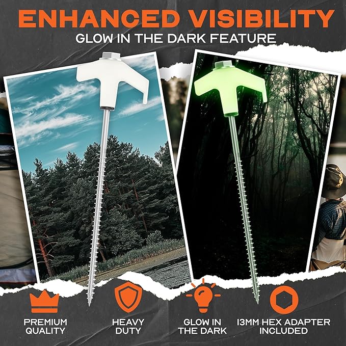 - HIGH QUALITY & DURABLE - Made from high-quality steel with a threaded end for easy insert and superior grip when drilling into various hard surfaces. The top of the stake conveniently glows brightly in the dark after only a short exposure to sunlight.