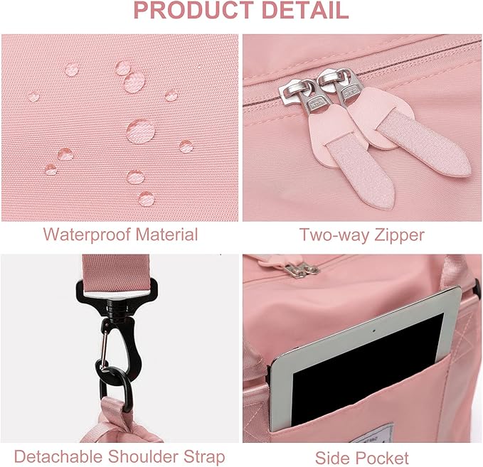 Womens travel bags, weekender carry on for women, sports Gym Bag, workout duffel bag, overnight shoulder Bag fit 15.6 inch Laptop Pink Large