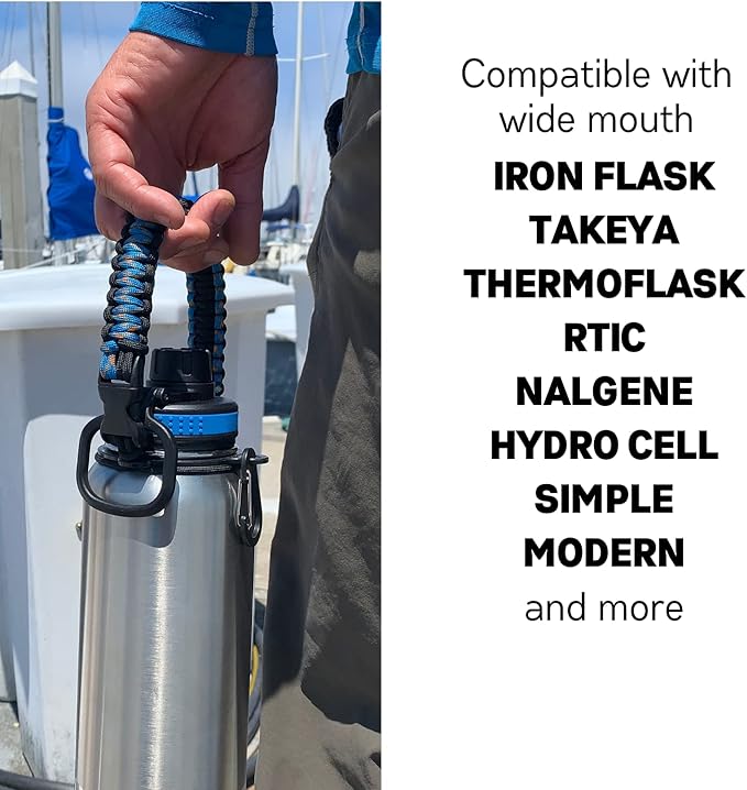 - DESIGNED FOR COMFORT – Lightweight yet ultra-durable, this paracord handle ensures a comfortable grip for daily use. Whether you're hiking, camping, or on the go, it keeps your water bottle secure while adding a stylish, functional touch.