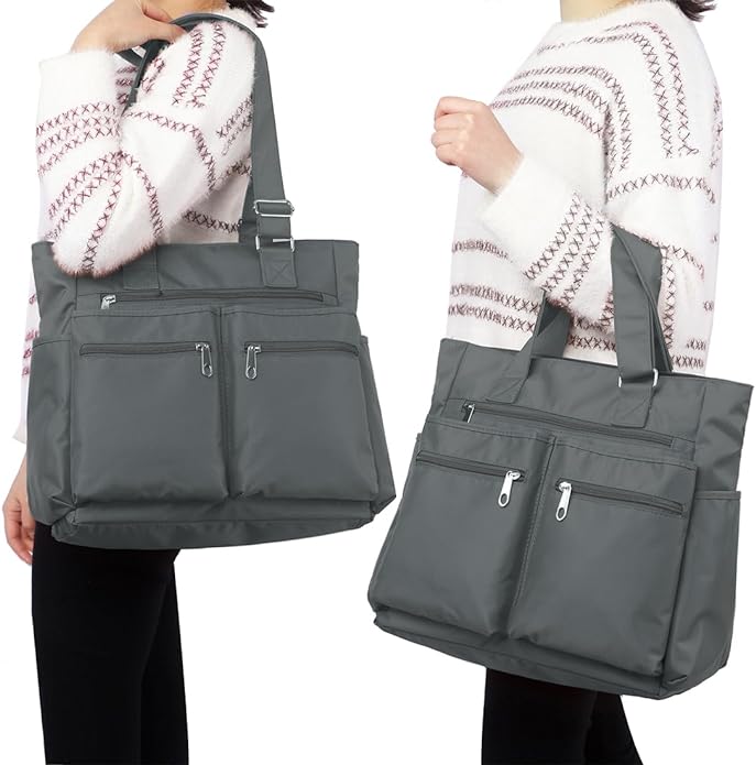 VOLGANIK ROCK Canvas Tote Bag Waterproof Nylon Multi Pocket Shoulder Bags Laptop Work Bag Teacher Purse Handbag for Women Men