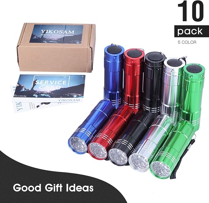 10 Pack of Flashlights 9 LED Mini Aluminum Flashlight Bulk with Lanyard 30 AAA Batteries Included Assorted Colors Handheld Flashlights for Hurricane Supplies Camping, Night Reading, Cycling