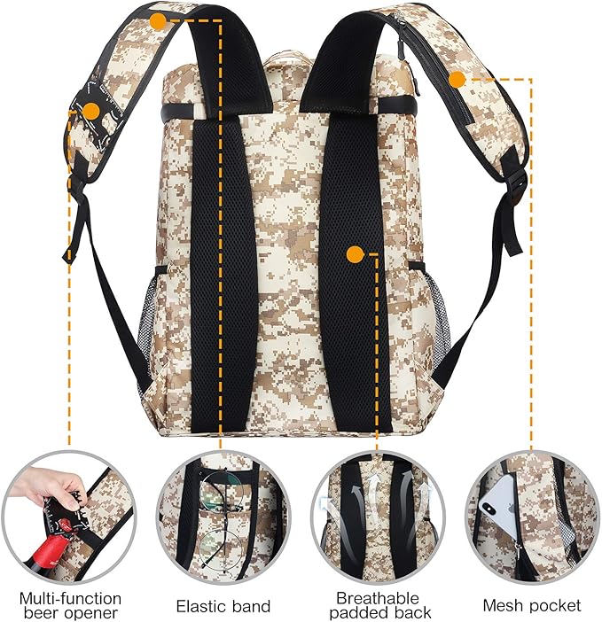 - Leakproof & cold / hot: The inner insulation thicken foam and leakproof peva liner of the cooler backpack work together to keep things cold or hot for hours and make sure anti-leaking.