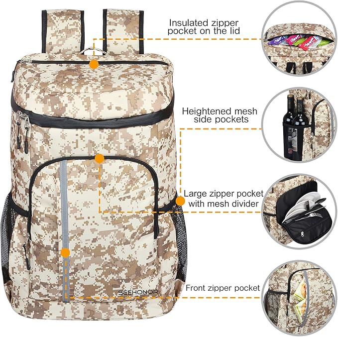SEEHONOR Insulated Cooler Backpack Leakproof Soft Cooler Bag Lightweight Backpack with Cooler for Lunch Picnic Hiking Camping Beach Park Day Trips 45 Cans