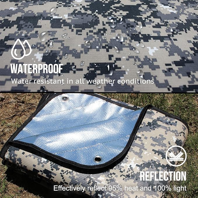 - 🌠【High-purity Aluminum Reflection】Reflect Heat To Maintain At Least 95 Percent Of Body Temperature In The Wild. Used As Sunshine Shelter Or Emergency Signal. Camouflage Side Helps Hide In Woods.