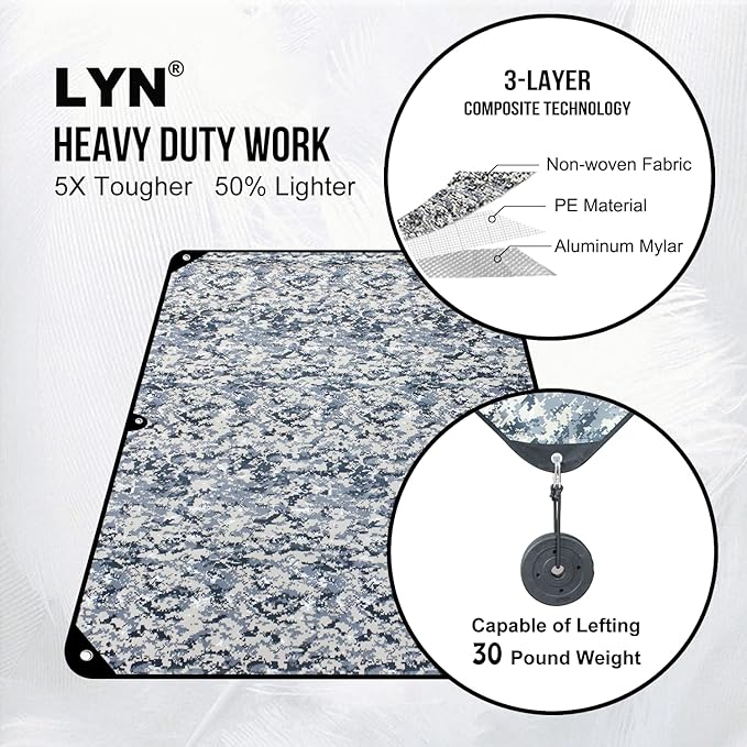 LYN Heavy Duty Emergency Blanket Survival Gear Waterproof Insulated Blanket Emergency Tarp for Camping, Hiking, Bushcraft