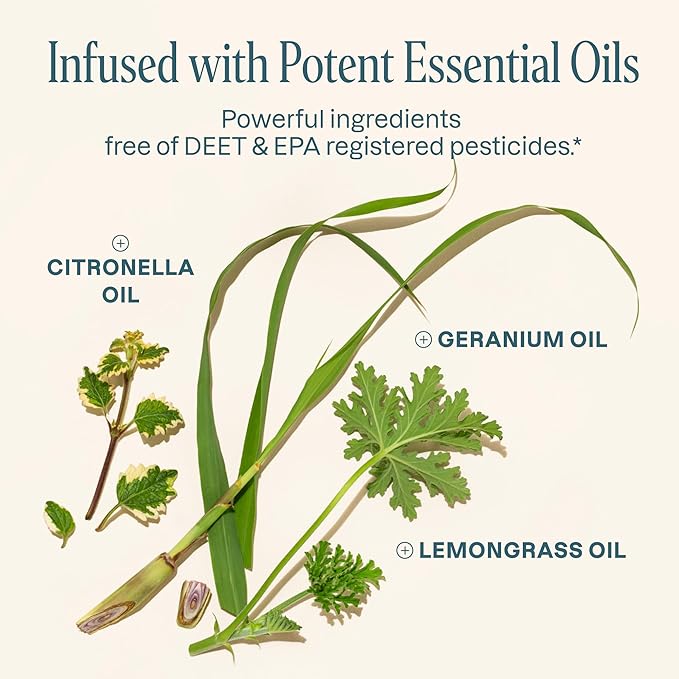 - DEET-Free & Powered By Essential Oils – Active ingredients derived from plants without registered pesticides