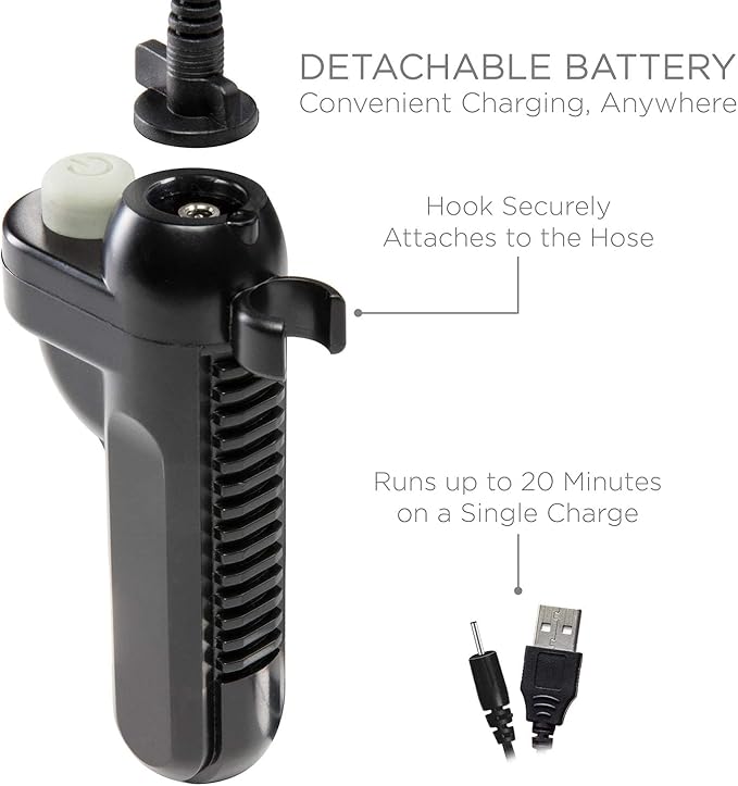 - LONG-LASTING RECHARGEABLE BATTERY | Powerful Li-Ion Battery w/ Detachable Pack Provides 45-60 Minute Operating Time on a 2.5-5 Hour Charge | Use the Included Cable to Charge Via Car, Laptop, Phone Charger or Any USB Input