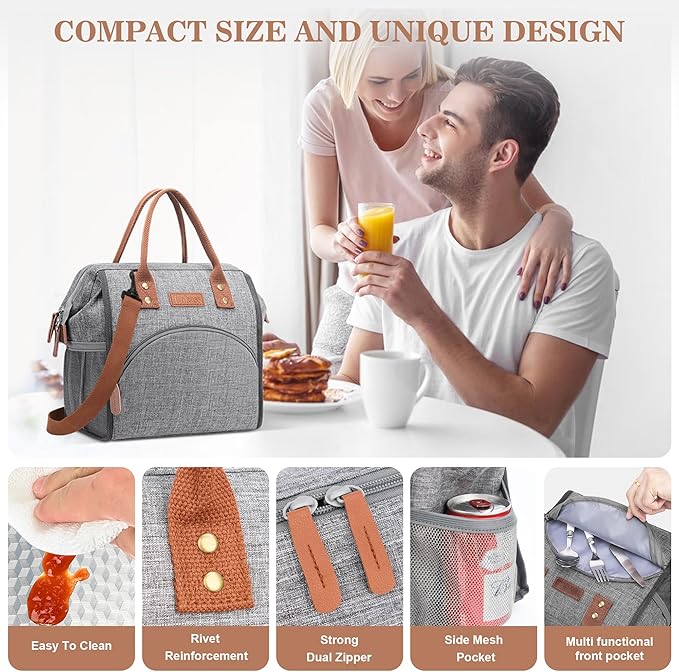 - [Durable & Portable for Everyday Use] Built to last, this lunchbox for woman has been tested to withstand over 5,000 load-shaking cycles with 22lb (10kg) of weight. It features reinforced linen handles, heavy-duty stitching, and an adjustable, removable shoulder strap for convenient carrying options—perfect for work, travel, and outdoor activities.