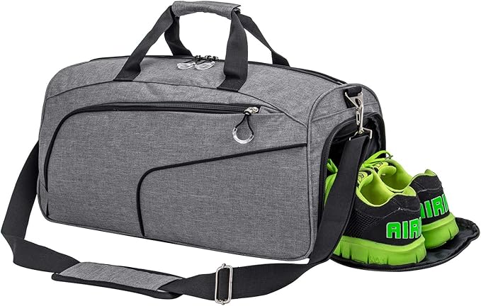 Kuston Sports Gym Bag with Shoes Compartment &Wet Pocket Gym Duffel Bag Overnight Bag for Men and Women