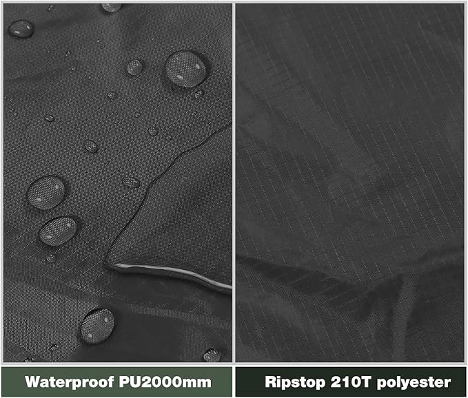 - WATERPROOF: The waterproof tent tarp is made of 210T polyester ripstop PU2000mm