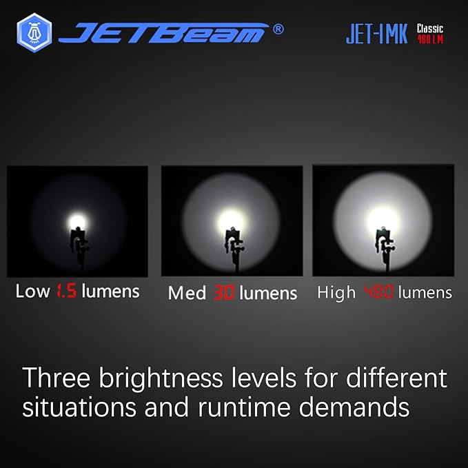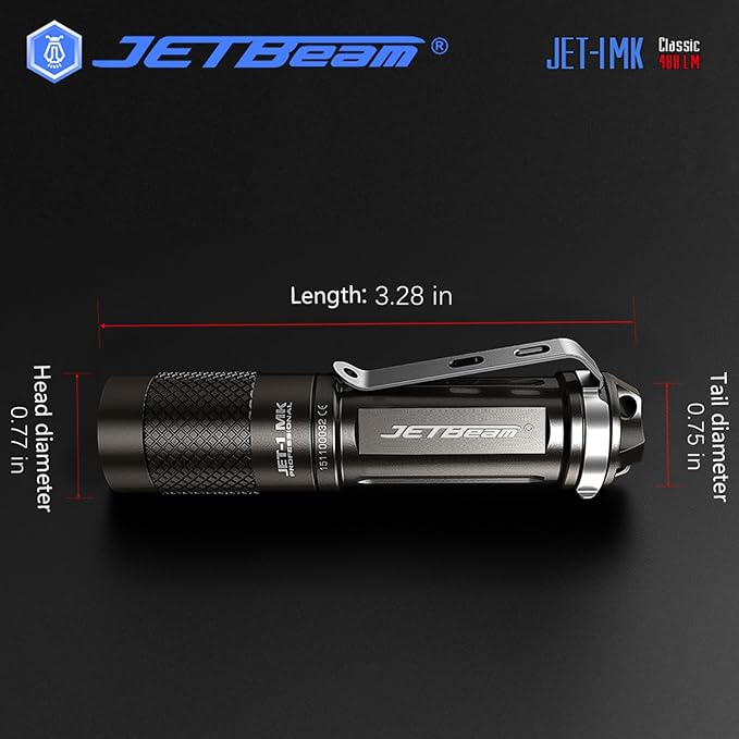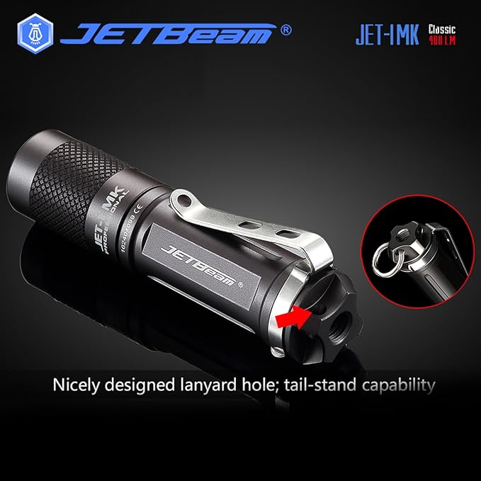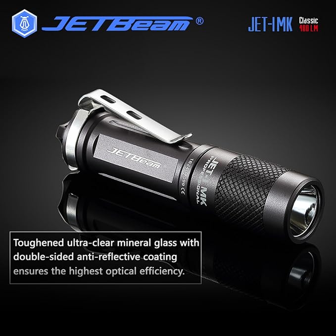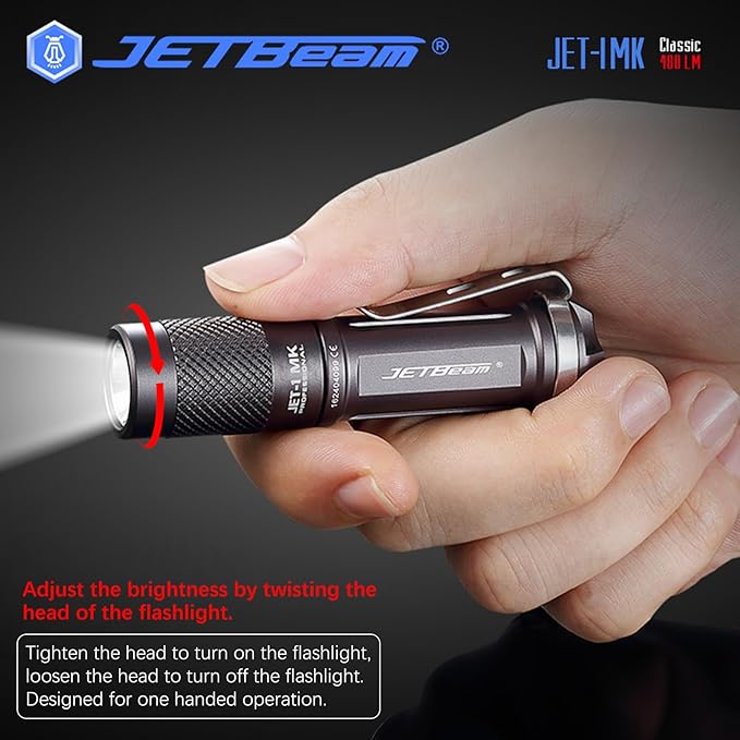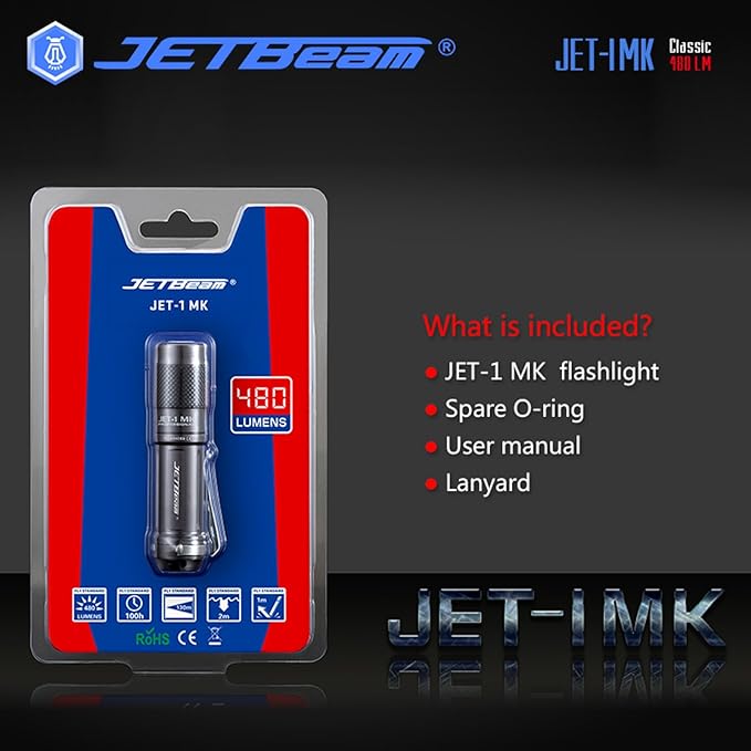 JETBeam I-MK LED Emergency Handheld Flashlight, 480 Lumen Mini Outdoor Flashlight for Hiking, Camping, Dog Walking, IPX-8 Water Resistant with 3 Modes