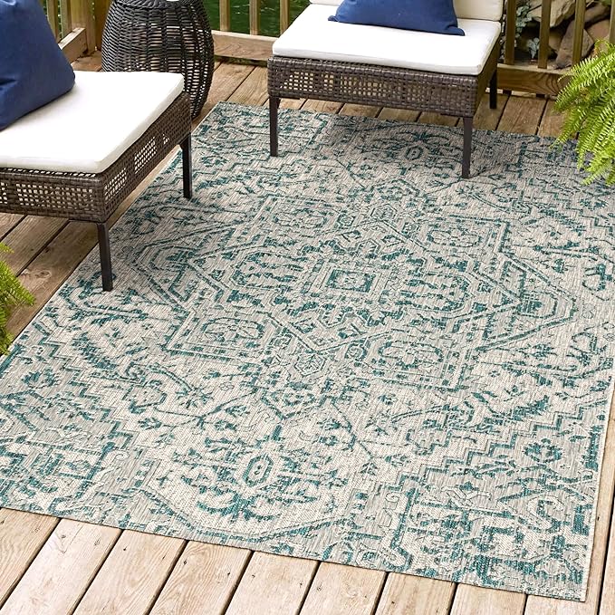 - INDOOR/OUTDOOR DURABILITY: Give your patio, deck or porch an instant makeover with an indoor/outdoor rug; Low-pile synthetic rug fibers are durable for high-traffic spaces like the kitchen, mud room or entry; Perfect for families with kids