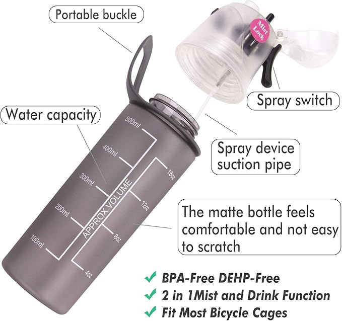 - EXTRA SPRAY FUNCTION, can be used in the process of sports to cooling or filling water for your body, exercises excessively and frantically for Humidification Cooling