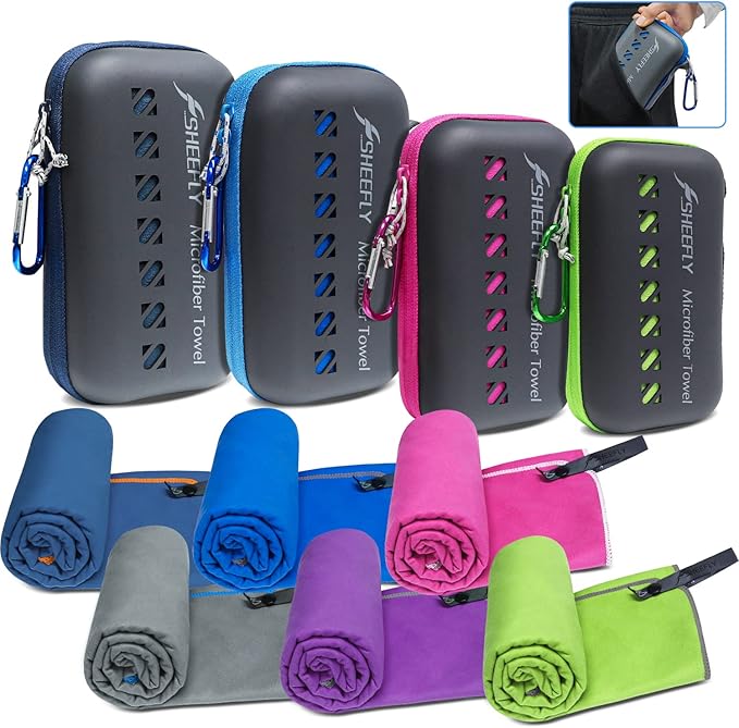 - Convenient Designed and Perfect gift:SHEEFLY camp towels come in a variety of colors and sizes,EVA case, carabiner and hanging snap loop. Specially design for traveling, swimming, workouts, backpacking, yoga, hiking, gym, golf ,setting up camp after a long hike. Our fast drying towel is a perfect gift for fitness enthusiasts, yoga enthusiasts, athletes, and camping explorers. If you have any questions about our camping towels, please contact us. We will reply to you within 24 hours.