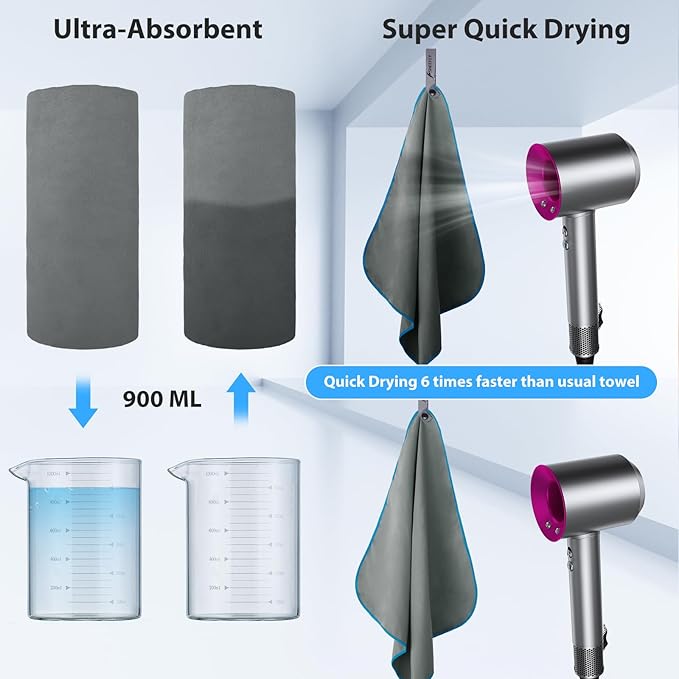 - Ultra-Soft and Multi-Use:These quick dry,multi-use towels use the finest blend of microfiber: thin, soft, ultra compact. Adopt friendly material soft, plush microfiber is super gentle on your face, body and skin. It’s perfect for quick dry off the skin after traveling, swimming, workouts, backpacking, yoga, hiking,gym,golf ,setting up camp after a long hike. Our quick-dry towels is multifunctional, durable, and reusable for years of use.