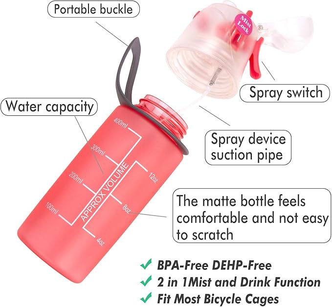 - EXTRA SPRAY FUNCTION, can be used in the process of sports to cooling or filling water for your body, exercises excessively and frantically for Humidification Cooling
