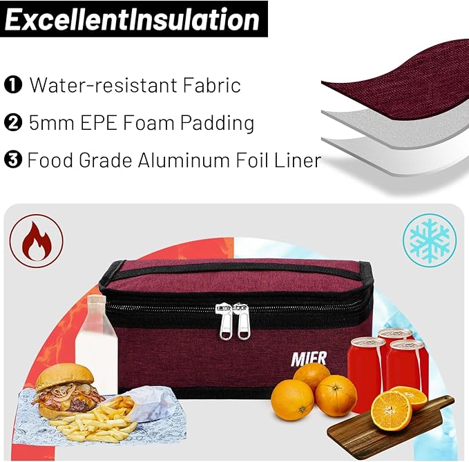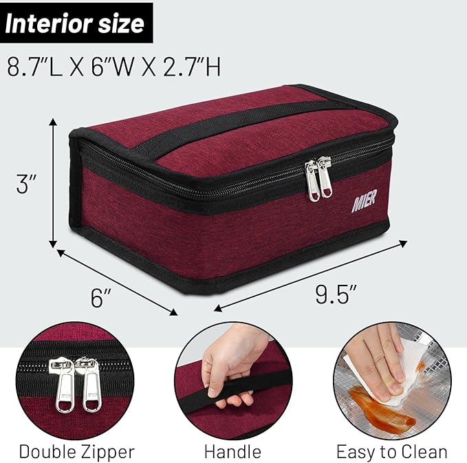 MIER Portable Thermal Insulated Cooler Bag Mini Lunch Bag for Kids, Dark Red