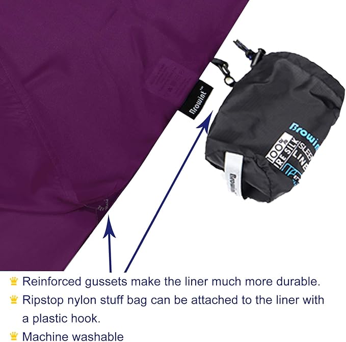- Silk liner keeps your sleeping bag clean and It’s also ideal for hotels, hostels, travel, camping and sleeping cars. <b>Question again: Is it real silk??? BROWINT: Yes, it is!